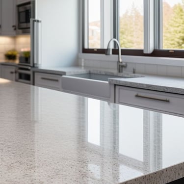 Whether you're renovating your kitchen or designing a brand-new space, our quartz countertops provide timeless elegance with unmatched strength. Their refined finish enhances any aesthetic, from contemporary to classic, while offering the durability needed for everyday use.Upgrade your home with expertly crafted countertops that combine style, functionality, and reliability. Experience the perfect balance of luxury and practicality with our premium quartz surfaces.